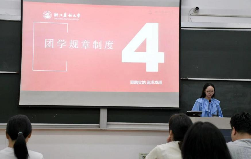 隨后,學生代表介紹了團學部門架構以及規章制度,分享了自身工作經驗與心得體會,并希望新同學們能夠盡快融入團學大家庭,在工作中互幫互助,實現個人與集體的共同成長與進步。各部門負責人也依次上臺介紹部門工作,并提出本學期工作規劃,加深新干事對組織架構以及職能分工的理解。