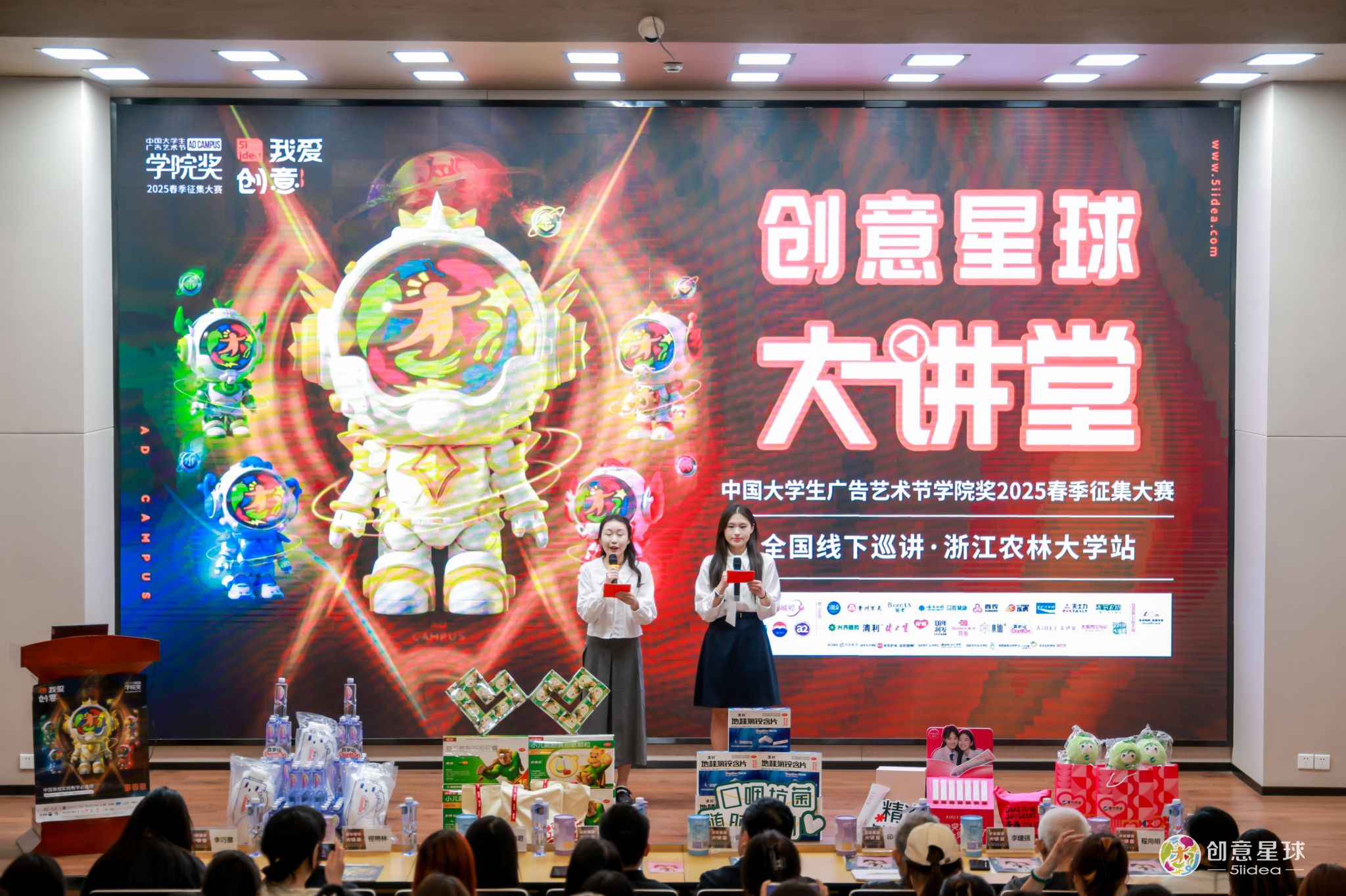4月18日,中國大學(xué)生廣告藝術(shù)節(jié)學(xué)院獎(jiǎng)2025春季賽:實(shí)踐課程進(jìn)校園——?jiǎng)?chuàng)意星球大講堂·浙江農(nóng)林大學(xué)站在東湖校區(qū)精彩開講。教務(wù)處、文法學(xué)院相關(guān)負(fù)責(zé)人、廣告人文化集團(tuán)副總裁李建強(qiáng)、高聰市場(chǎng)營銷顧問印標(biāo)才以及眾多知名企業(yè)品牌專家出席活動(dòng)。