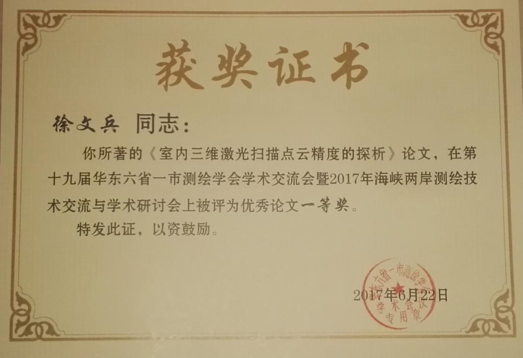 測繪學(xué)會組織專家認(rèn)真評審參賽論文300余篇,共評出優(yōu)秀論文一等獎14篇,二等獎21篇,三等獎35篇。我校測繪教師徐文兵等撰寫的《室內(nèi)三維激光掃描點云精度的探析》論文被評為優(yōu)秀論文一等獎。