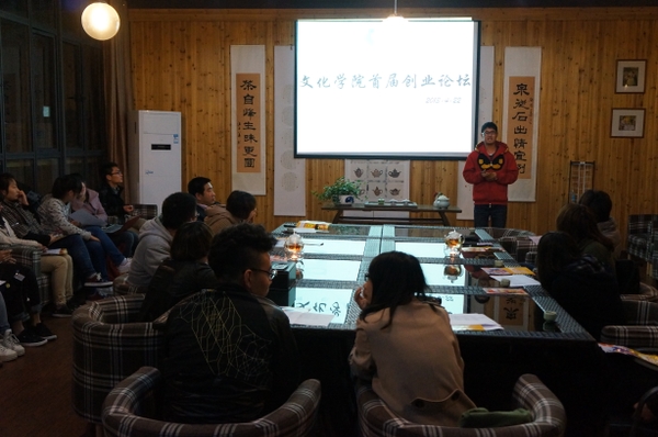 浙農林大新聞網訊 為展示學院學生創業成果,分享交流大學生創業經驗,文化學院于4月22日晚在中國茶謠館二樓舉辦首屆大學生創業項目論壇暨創業項目展示會。
