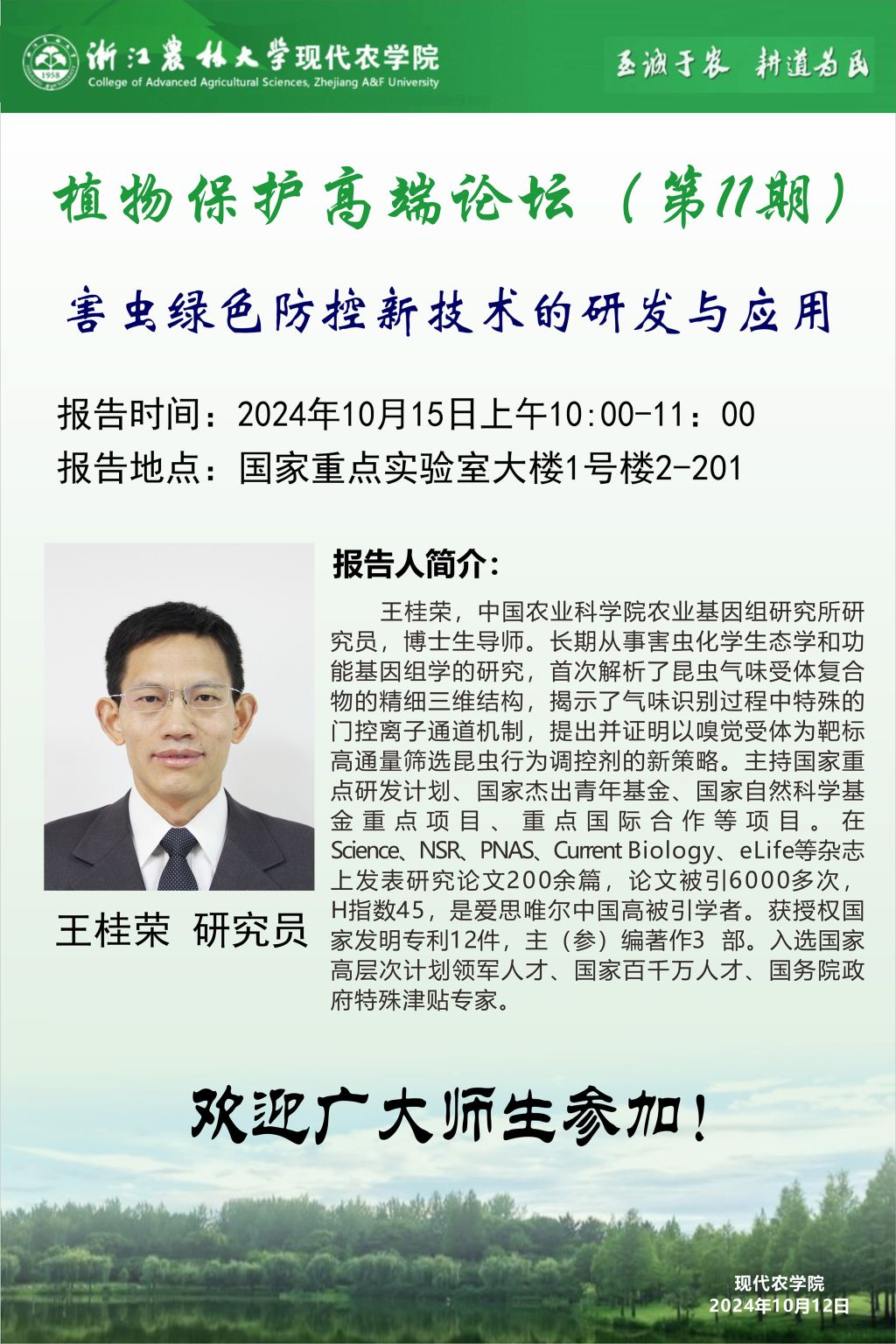 講座預(yù)告:植物保護(hù)高端論壇——害蟲綠色防控新技術(shù)的研發(fā)與應(yīng)用