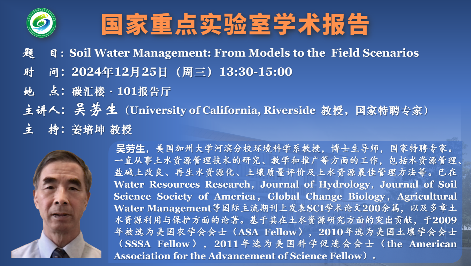 講座預告:Soil Water Management: From Models to the Field Scenarios