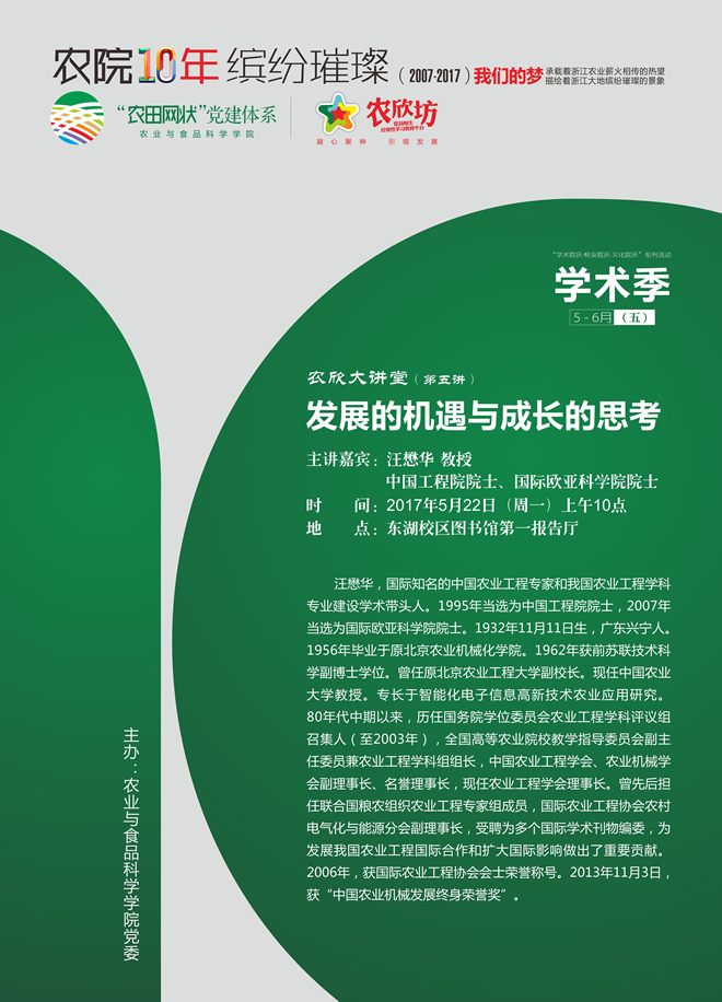 農(nóng)欣大講堂(第五講):中國工程院院士汪懋華《發(fā)展的機遇與成長的思考》