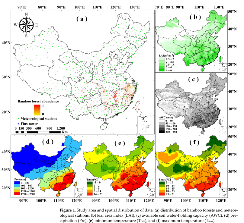 竹林是我國亞熱帶地區重要且特殊的森林資源,由于其分布范圍廣、生長速度快、固碳能力強等特點,在調節全球碳平衡等方面發揮著重要的作用。本研究以中國竹林為研究對象,以中國竹林遙感分布信息、竹林LAI同化數據產品和土壤、氣象等數據等驅動BEPS模型,模擬2001-2018年近20年中國竹林GPP和NPP,并分析了GPP、NPP時空演變格局及其對氣候因子的響應。