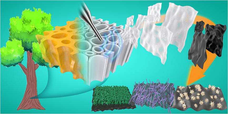 生物質仿生智能科學研究團隊圍繞木材仿生智能科學研究,近期已連續發表系列高質量國際學術論文,包括木材分級結構解譯及2D多功能平臺構建(ACS Nano, 2023, 17: 12663?12672,IF=17.1)、木質纖維重構的可穿戴“類森林織品”(ACS Nano, 2023, DOI: 10.1021/acsnano.3c00820,IF=17.1)、氫鍵-共價鍵順序橋接的高溫EM-IR雙隱身強韌薄膜(SmartMat, 2023, e1207,IF=20.4;Chem. Eng. J., 2023, 468: 143661,IF=15.1)等,證明了木材仿生智能科學在材料科學和工程中的原則和技術指導意義,實現了從納米到宏觀層次上對材料結構層次的自然引導控制。