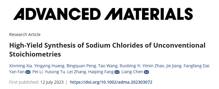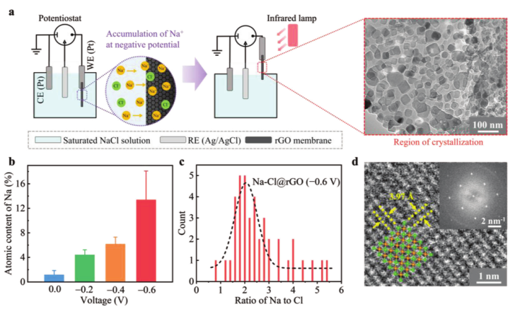 近日,光機電工程學院浙江省首批高校高水平創新團隊(碳基納米材料的物化特性及其應用研究團隊),在國際頂尖期刊《ADVANCED MATERIALS》(JCR:Q1/中科院:1區,IF=29.4)在線發表題為“High-Yield Synthesis of Sodium Chlorides of Unconventional Stoichiometries”(非常規化學計量氯化鈉的高產合成)的研究論文,該研究通過在還原氧化石墨烯膜(rGOM)上施加負電勢實現了非常規化學計量的二維Na2Cl晶體的高產率合成,并發現該二維晶體具有獨特的壓電特性,為含有非常規化學計量二維鹽晶體的實際應用邁出了重要一步。