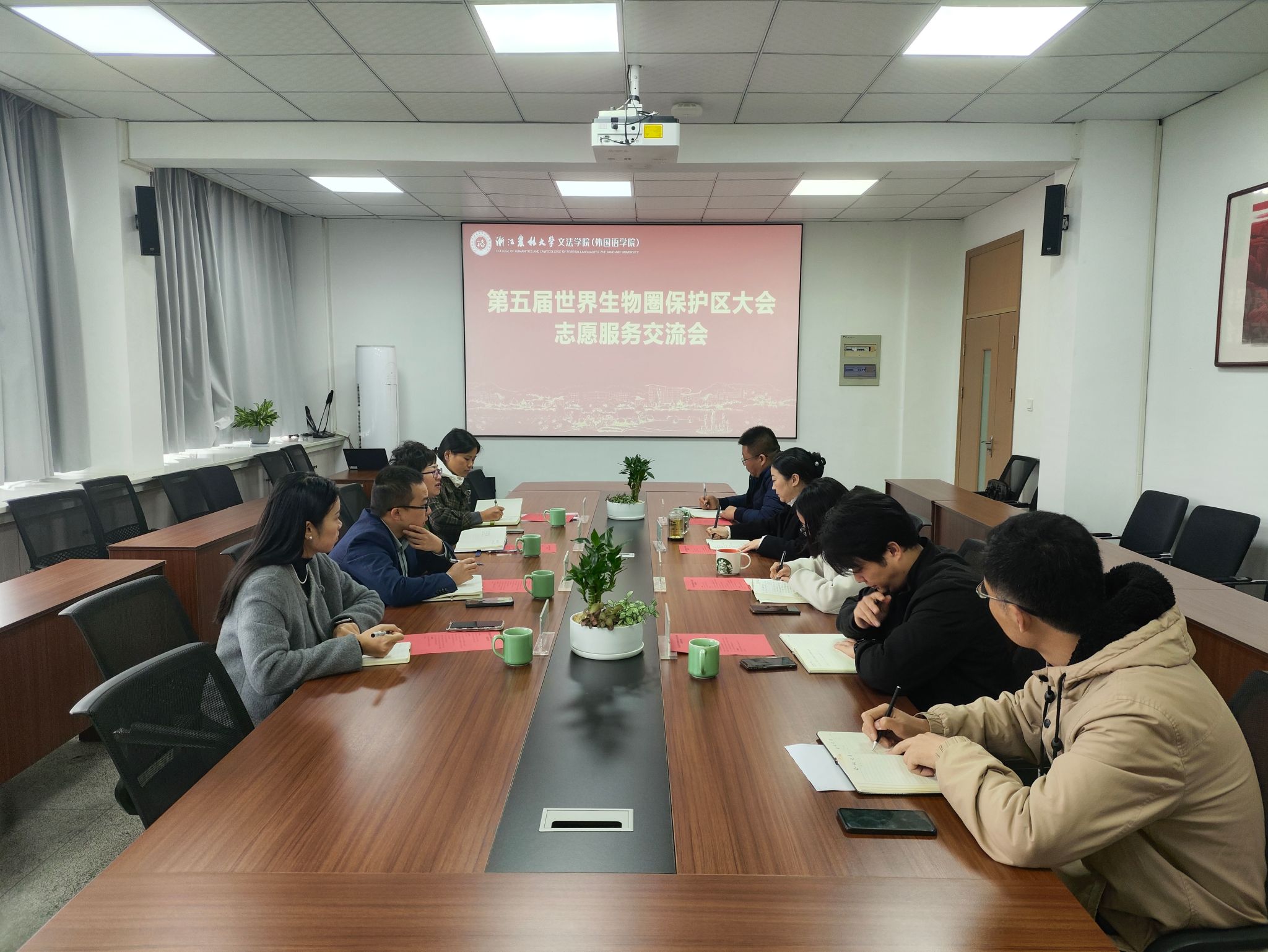 12月4日上午,臨安區(qū)第五屆世界生物圈保護區(qū)大會專班主任帥樂芳一行,來校對接志愿服務工作。校團委、文法學院相關負責人接待了臨安區(qū)工作專班。