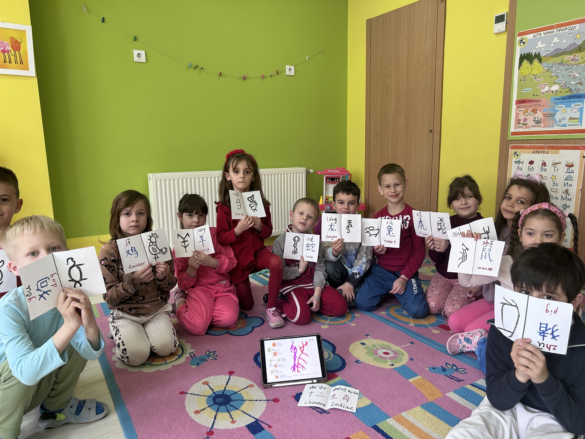 科沃科卡幼兒園(Kockica Kindergarten)舉辦“甲骨有靈·生肖漢字溯源”活動。學生們通過趣味互動的方式了解甲骨文和生肖漢字的關系,感受漢字之美。