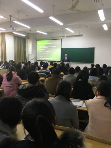 Alexander N.Akulli介紹了南卡大學(xué)的基本情況,詳細(xì)地說明了我校和南卡的出國交流項(xiàng)目相關(guān)內(nèi)容及申請(qǐng)學(xué)生需達(dá)到的要求,并一一回答了學(xué)生們提出的問題。校國際處相關(guān)負(fù)責(zé)人就出國交流學(xué)習(xí)及其他學(xué)分互認(rèn)項(xiàng)目進(jìn)行了更深入地介紹。