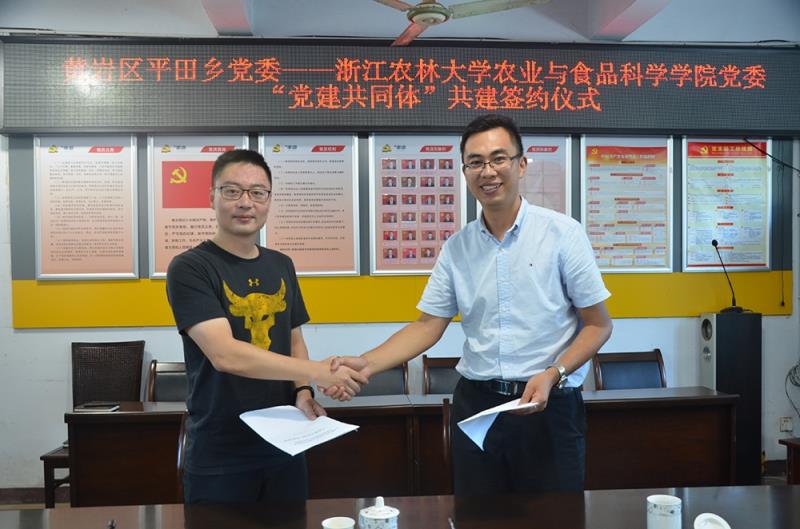 8月20日,農學院黨委書記董杜斌一行前往臺州市黃巖區平田鄉調研走訪,與平田鄉黨委簽約黨建共同體。董杜斌,平田鄉黨委書記郭韜韜及雙方黨員代表出席簽約儀式。