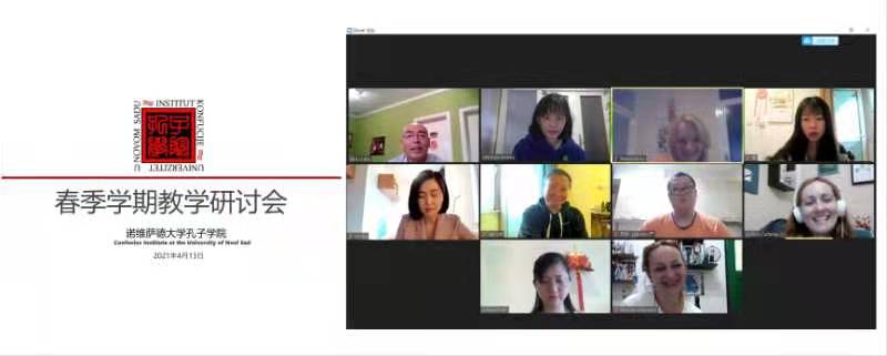 當地時間4月13日,我校合作共建的諾維薩德大學孔子學院召開2021年春季學期網絡教學研討會。全體在崗教師和當地三名本土中文教師娜塔莎·佩西琪(NatasaPesic)、麗碧彩·庫達諾娃(Ljubica Cudanov)和瑪麗安娜·馬科維奇(Marijana Markovic)參加,中方院長陳晦主持會議。